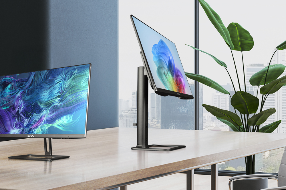 Siyah ve beyaz renk seçenekleriyle her ortama uyum sağlayan zarif tasarım, VESA ve Pivot özellikli ayak seçenekleriyle kullanım konforunu en üst seviyeye taşır.